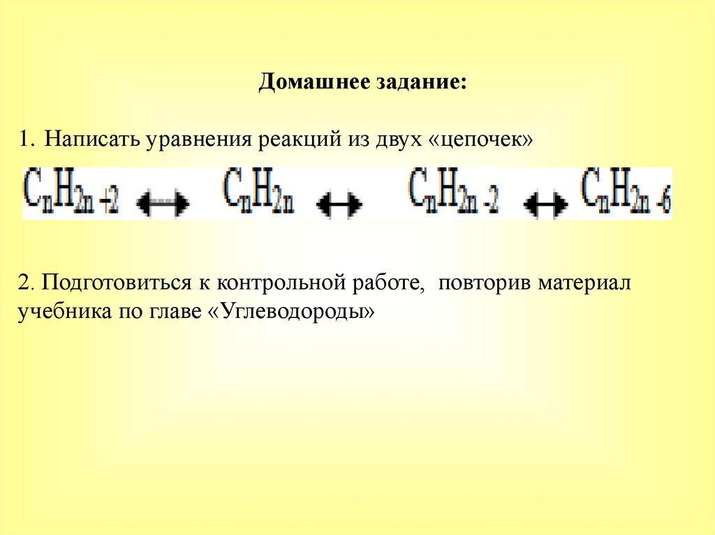 Домашнее задание:1. Написать уравнения реакций из двух «цепочек»