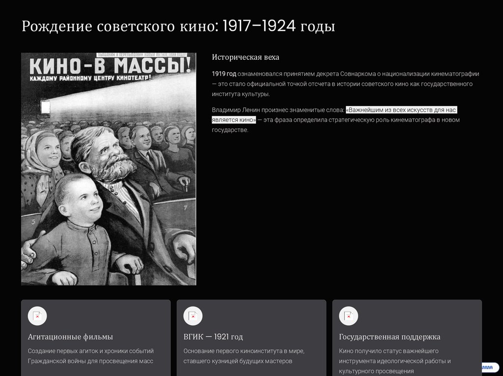 Рождение советского кино: 1917–1924 годыИсторическая веха
