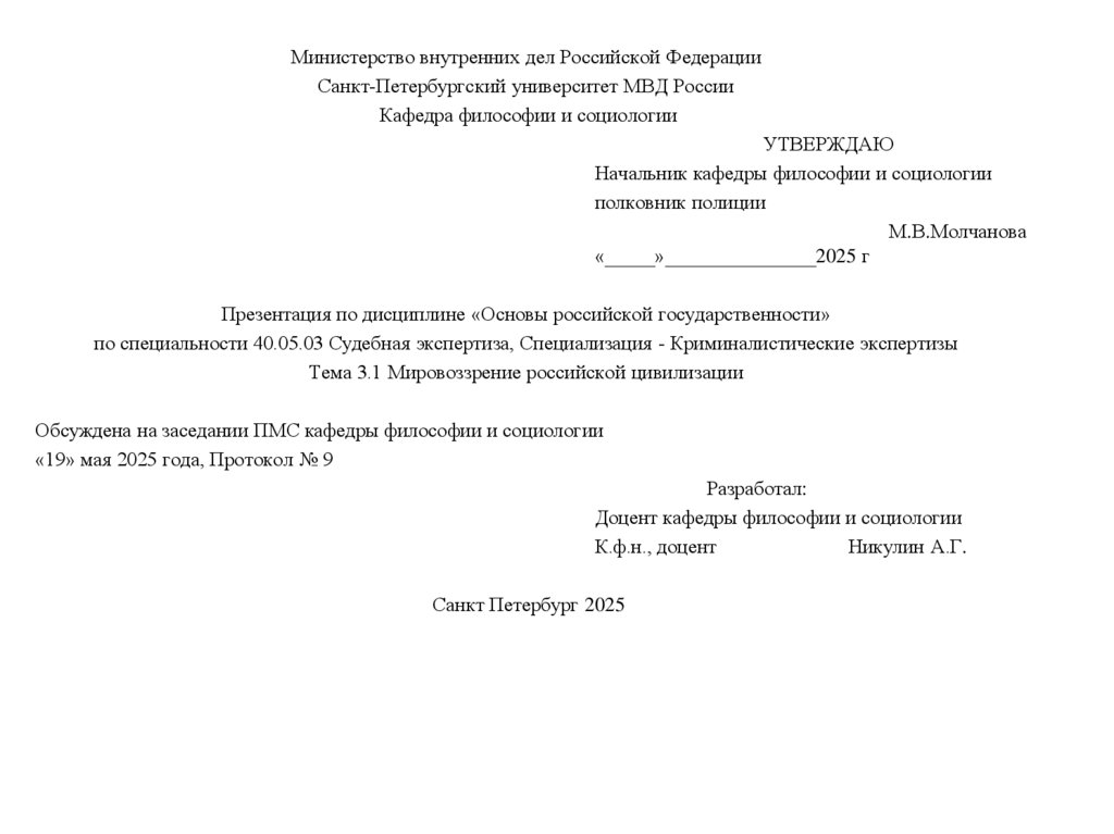 Тема 3.1 Мировоззрение российской цивилизации