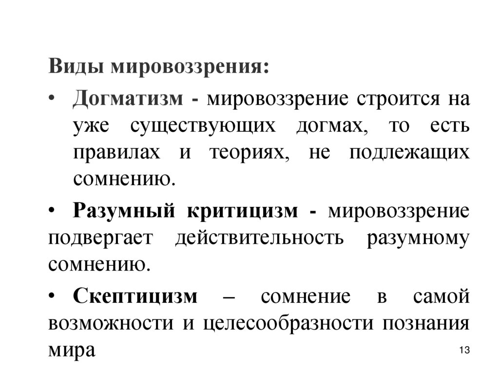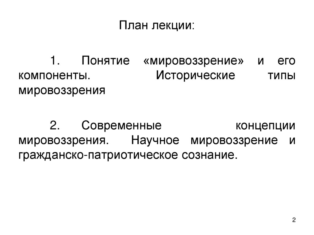 3. Вопрос 1. Понятие «мировоззрение» и его компоненты. Исторические типы мировоззрения