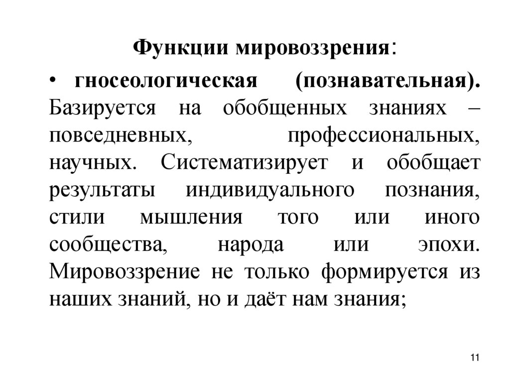 Функции мировоззрения:• гносеологическая