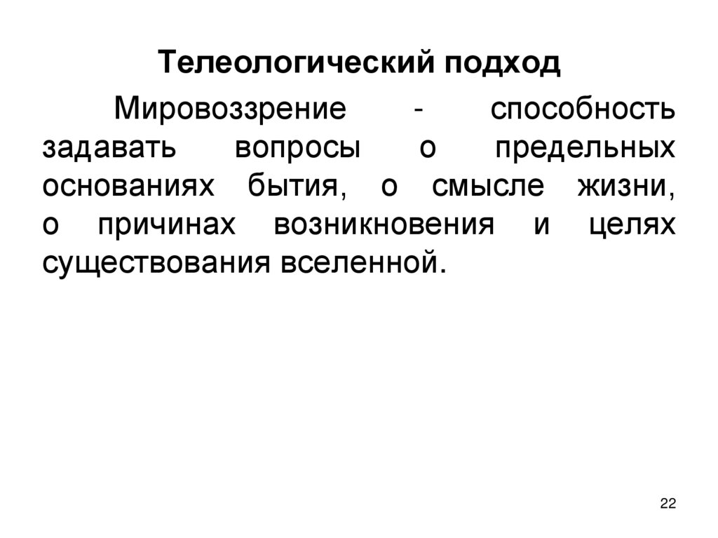Телеологический подходМировоззрение