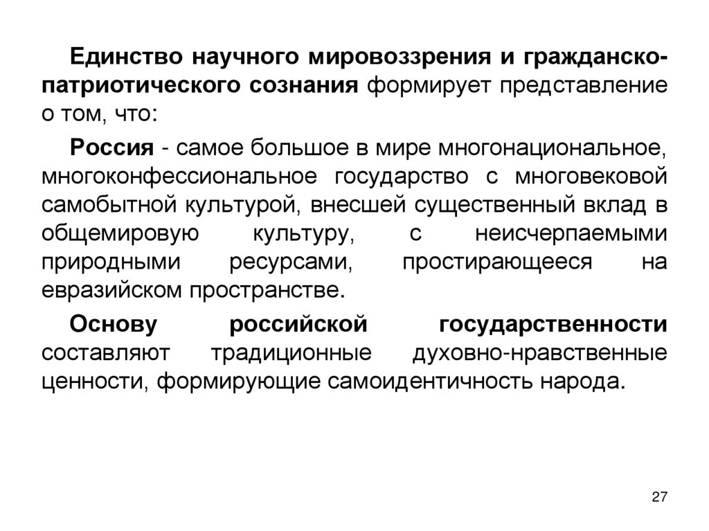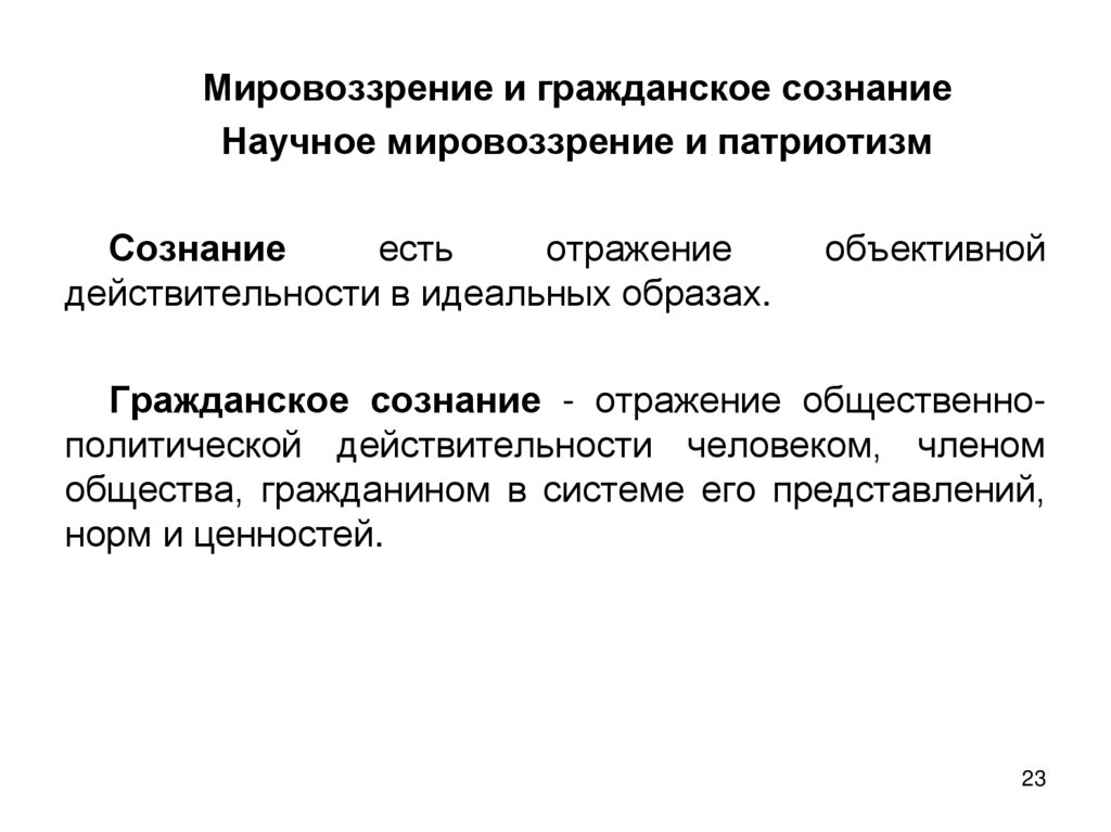 Мировоззрение и гражданское сознаниеНаучное мировоззрение и патриотизм