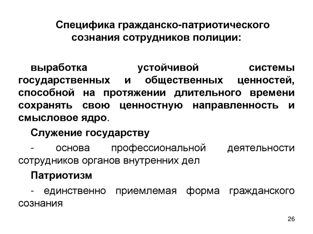 Специфика гражданско-патриотическогосознания сотрудников полиции:
