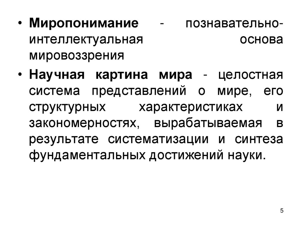 • Научная картина мира - целостная