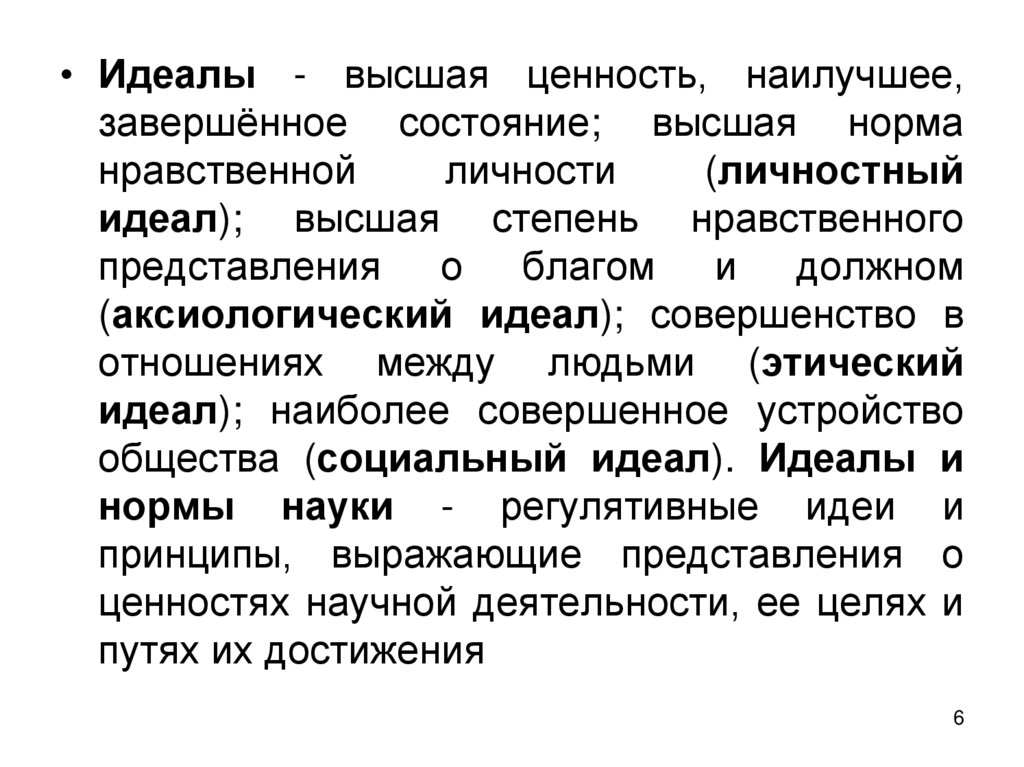 • Идеалы - высшая ценность, наилучшее,завершённое состояние; высшая норма