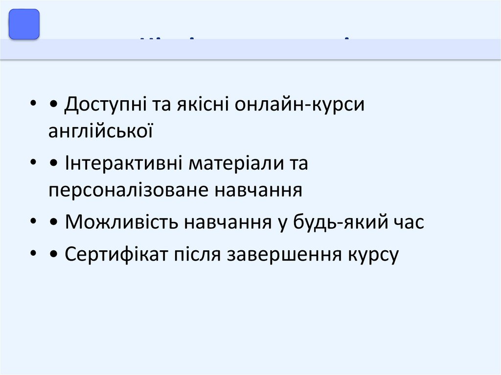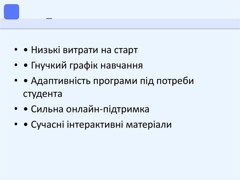 Ціннісна пропозиція• • Доступні та якісні онлайн-курси