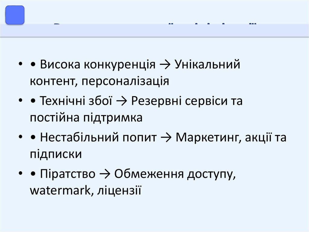 Ризики та шляхи їх мінімізації• • Висока конкуренція → Унікальний