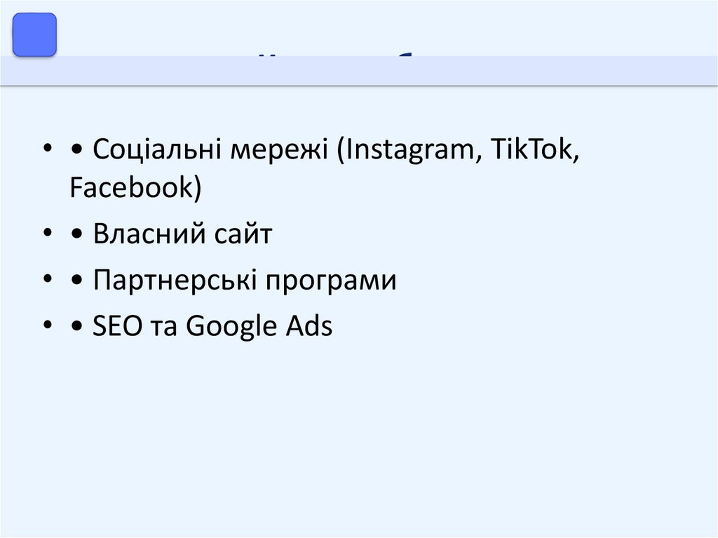 Канали збуту• • Соціальні мережі (Instagram, TikTok,