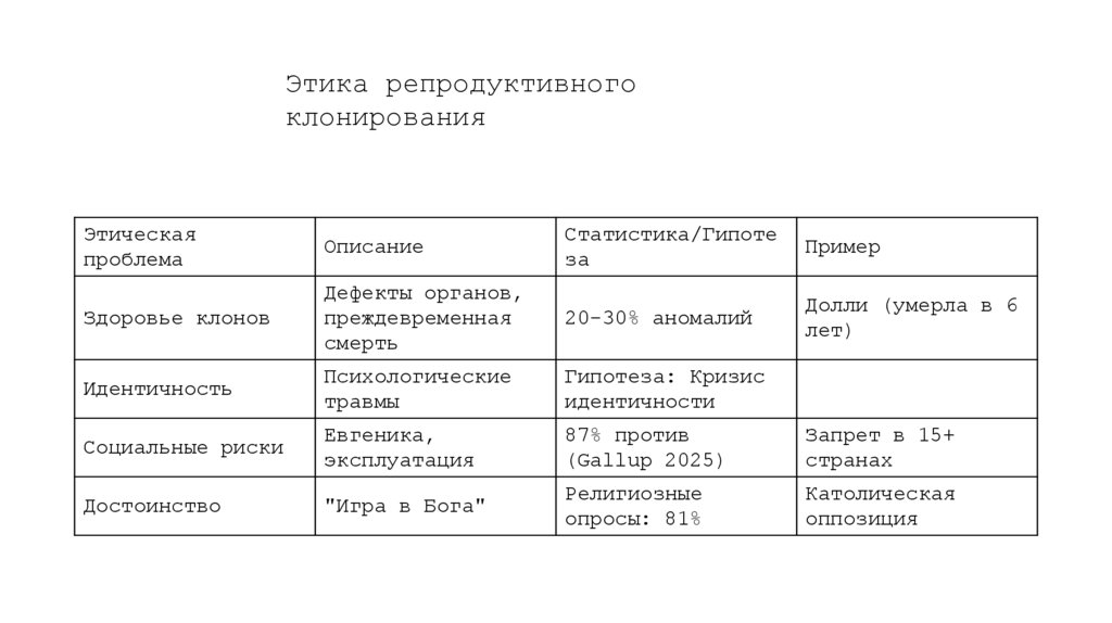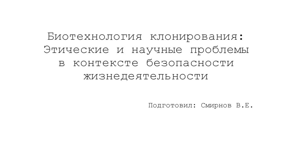 1. Биотехнология клонирования: Этические и научные проблемы в контексте безопасности жизнедеятельности