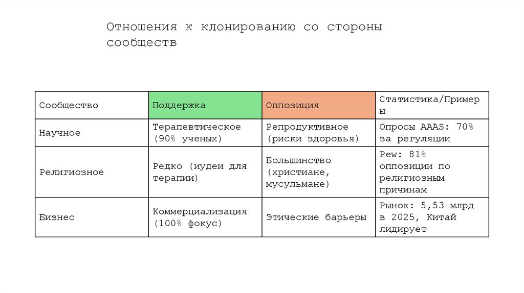 Репродуктивное клонирование поднимает вопросы идентичности, прав