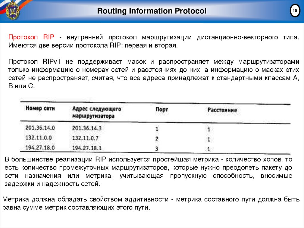 В RIP решения о маршрутизации основываются на числе переходов, путь с
