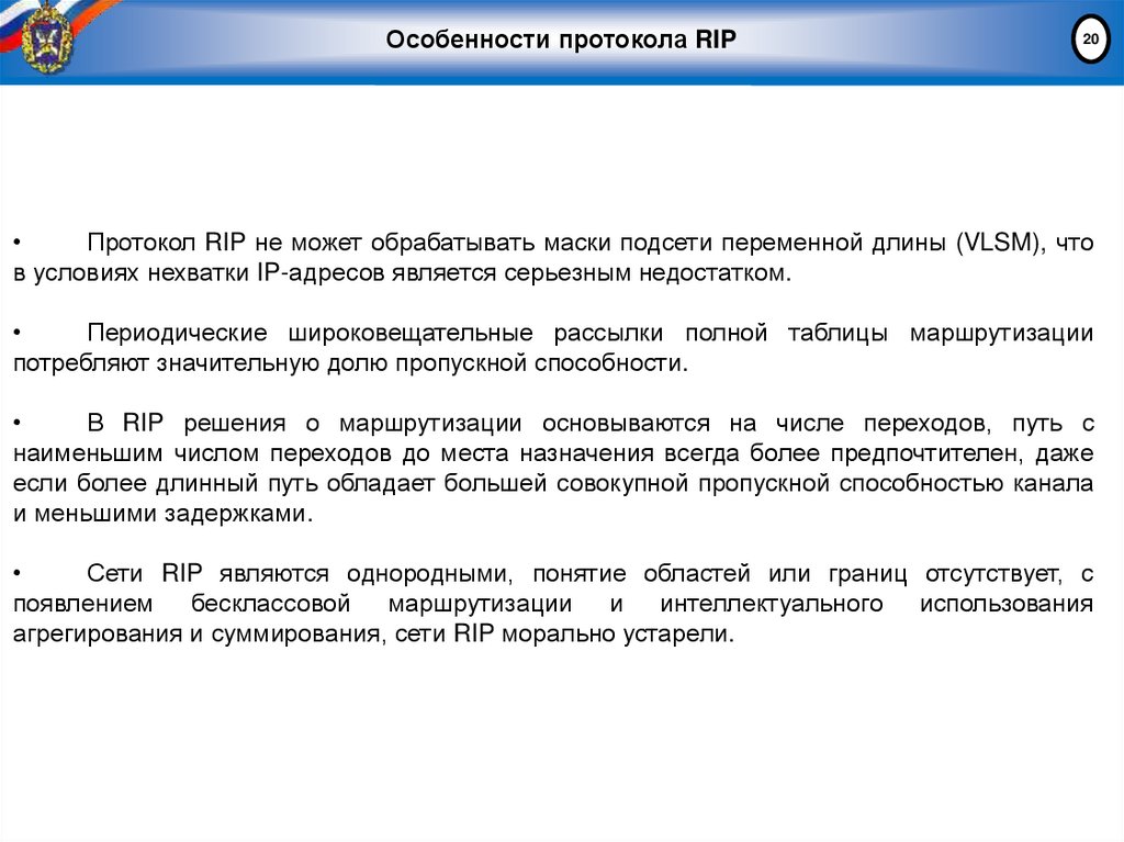 Протокол RIP не может обрабатывать маски подсети переменной длины (VLSM), что