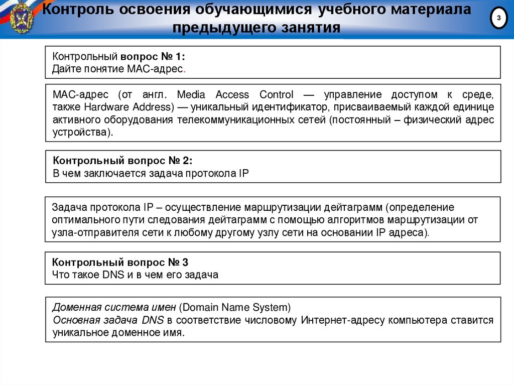 Контроль освоения обучающимися учебного материалаКонтрольный вопрос № 1: