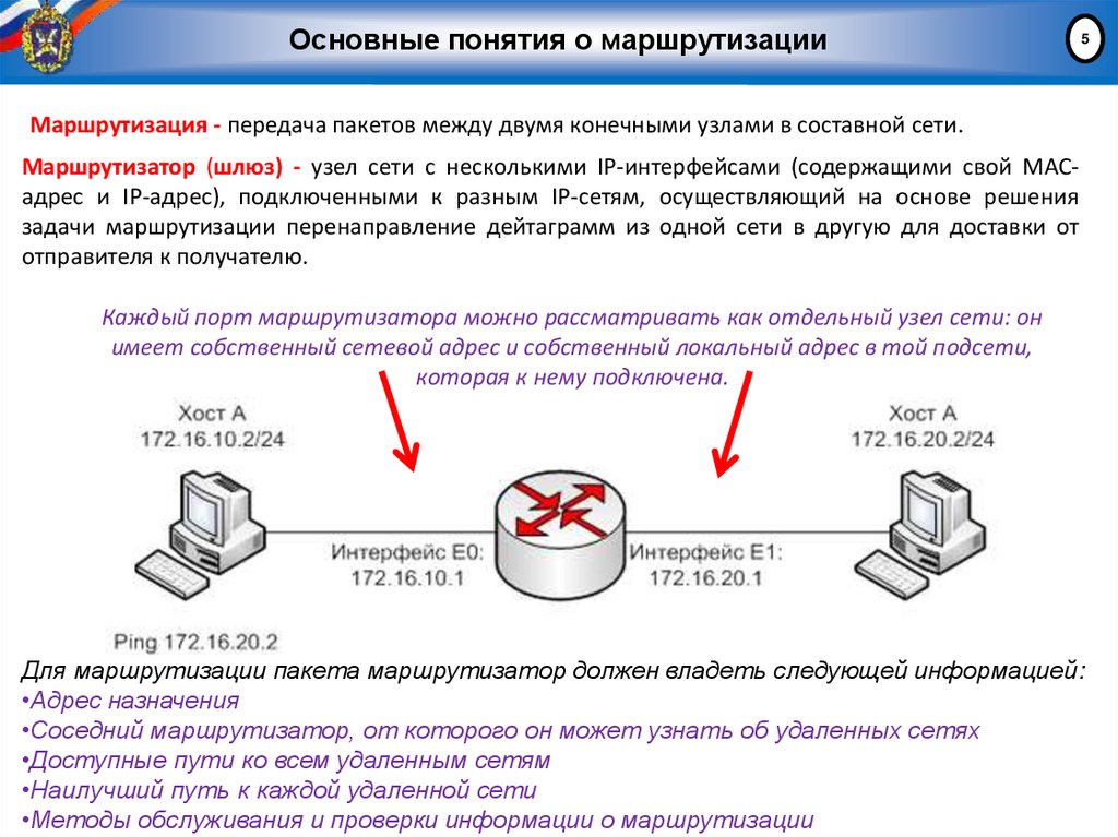 Для маршрутизации пакета маршрутизатор должен владеть следующей информацией: