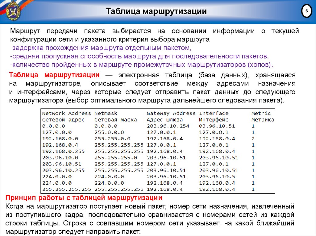маршрутизации. Данные об этом шаге и попадают в таблицу маршрутизации.