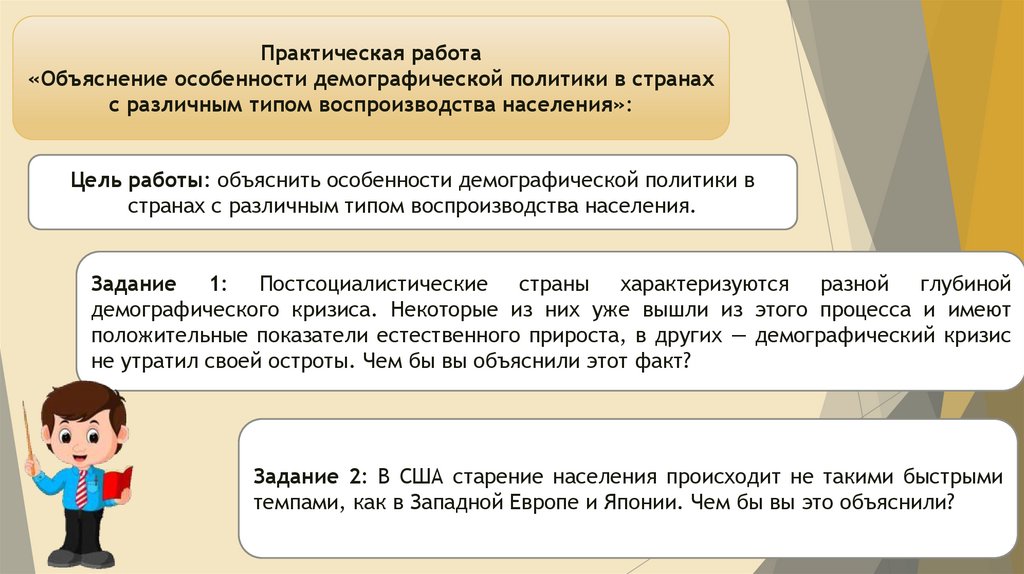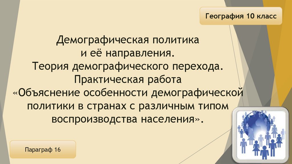 1. Демографическая политика и её направления. Теория демографического перехода. Практическая работа «Объяснение особенности