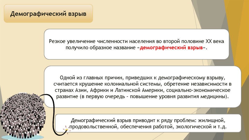 Демографический взрывРезкое увеличение численности населения во второй половине ХХ века