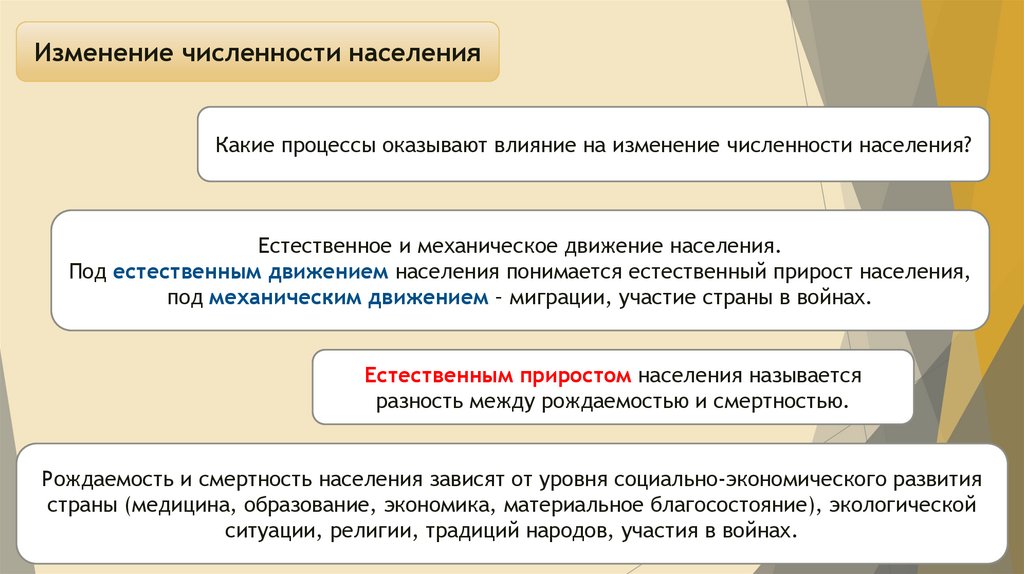 Изменение численности населенияКакие процессы оказывают влияние на изменение численности населения?