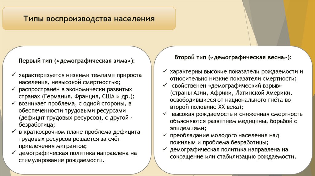 Типы воспроизводства населенияПервый тип («демографическая зима»):