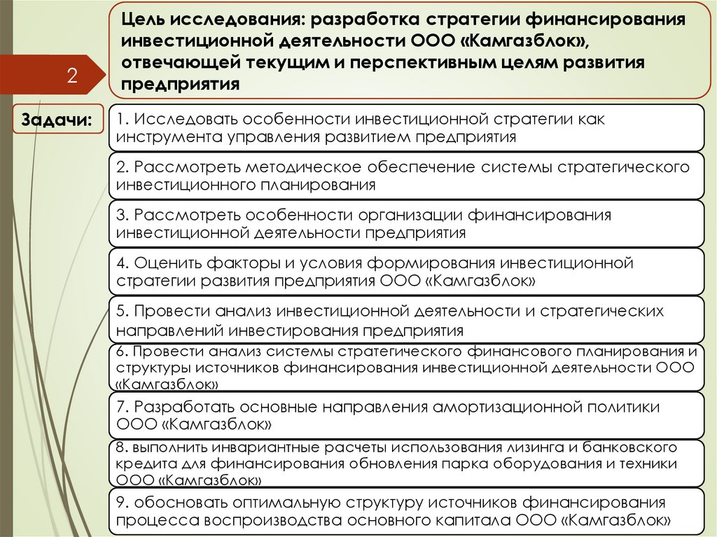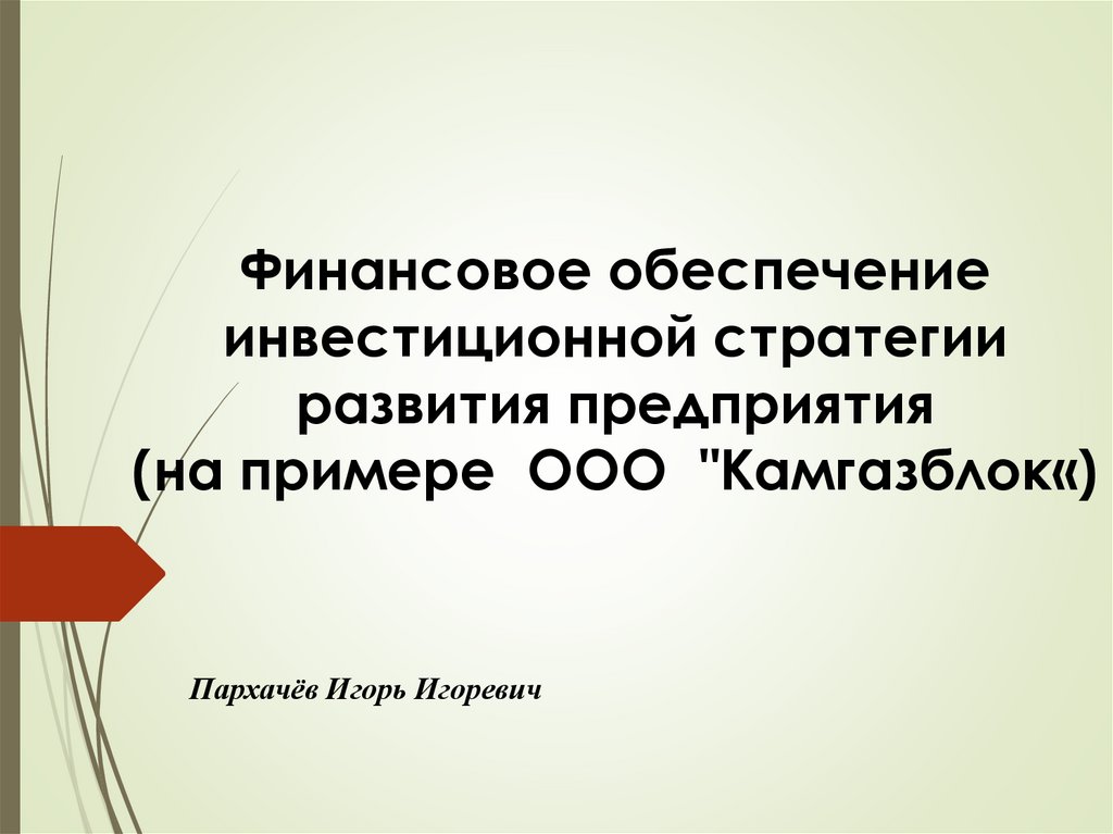 1. Финансовое обеспечение инвестиционной стратегии развития предприятия (на примере ООО "Камгазблок«)