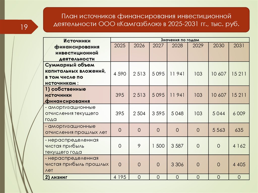 деятельности ООО «Камгазблок» в 2025-2031 гг., тыс. руб.