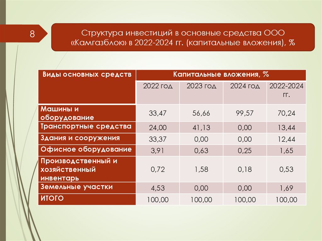 процесса воспроизводства основного капитала ООО «Камгазблок»