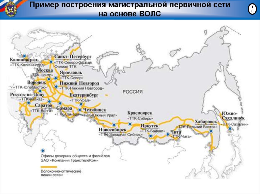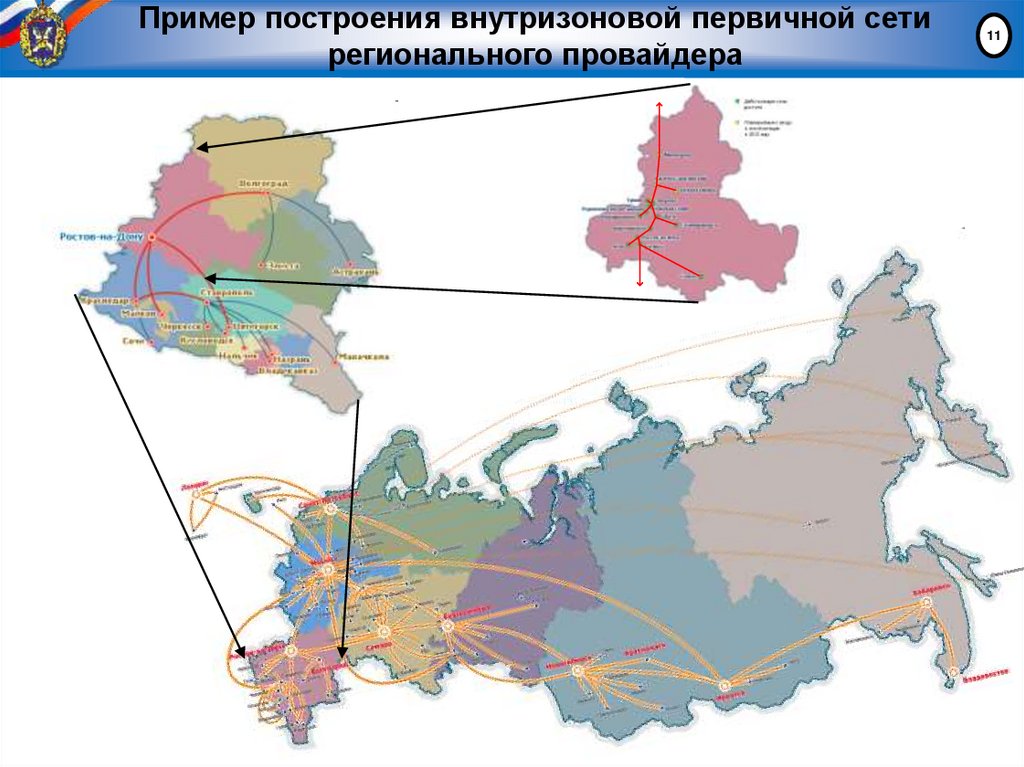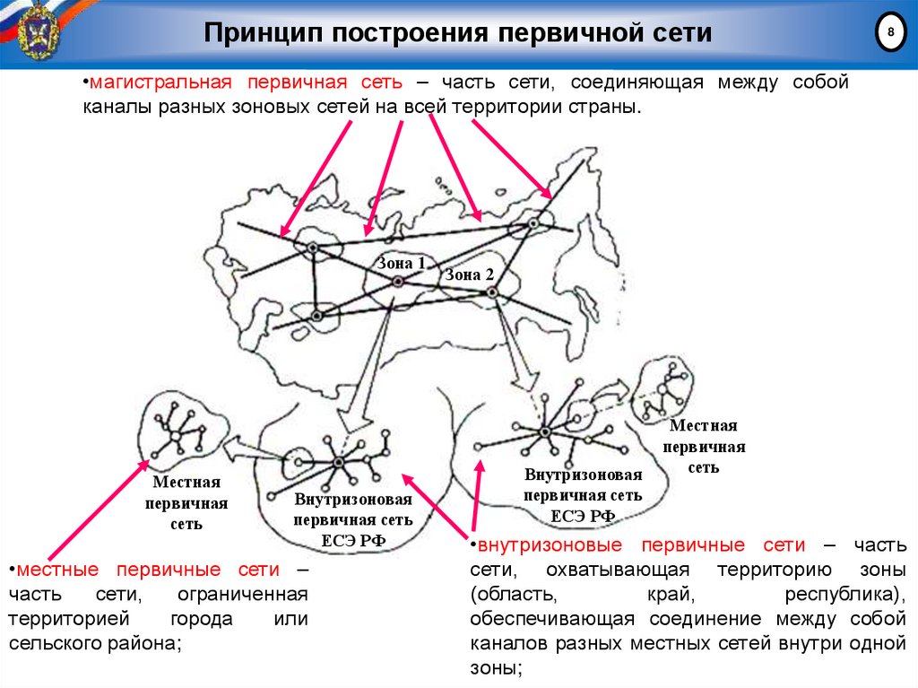 •магистральная первичная сеть – часть сети, соединяющая между собой