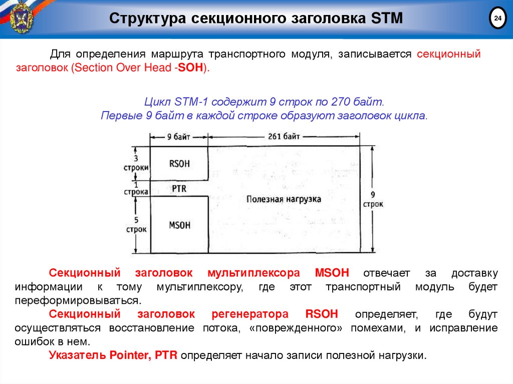 Секционный заголовок мультиплексора MSOH отвечает за доставку