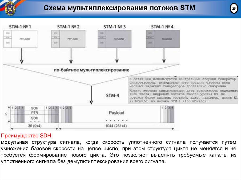 Цикл STM-1 содержит 9 строк по 270 байт.