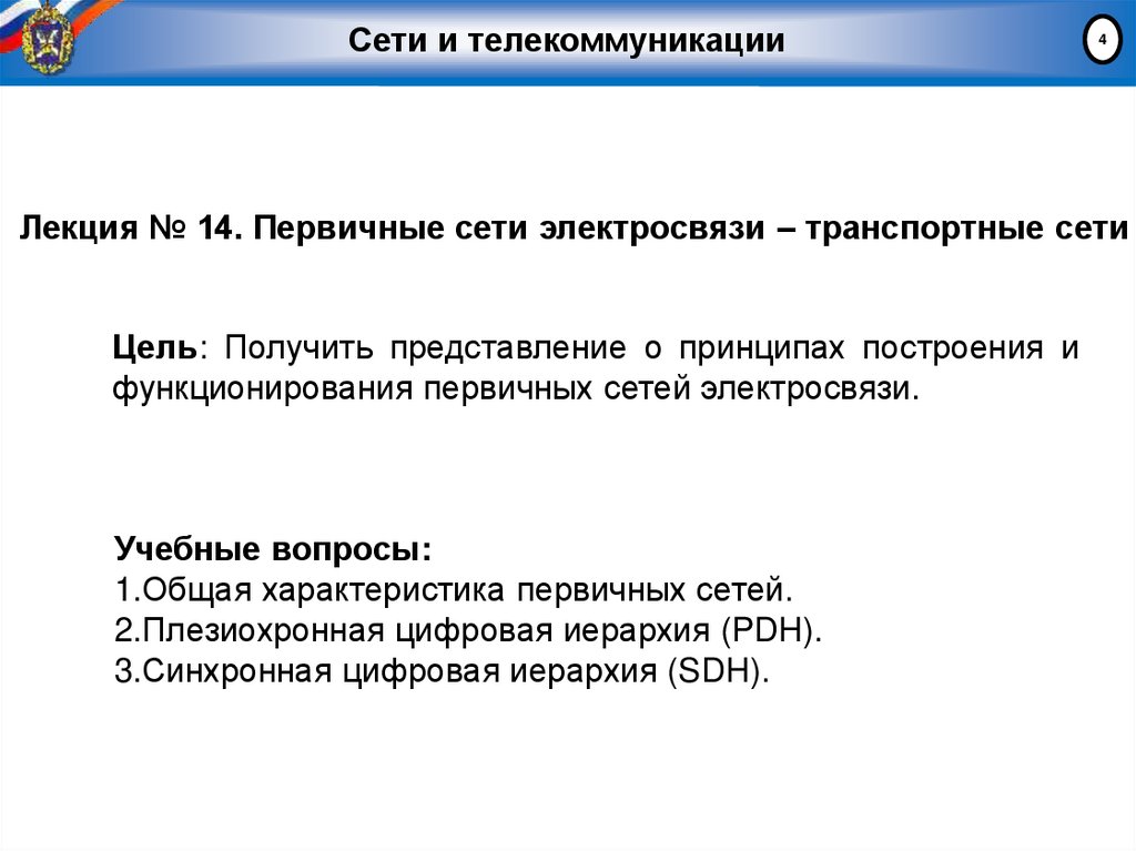 Учебный вопрос № 1Общая характеристика первичных сетей