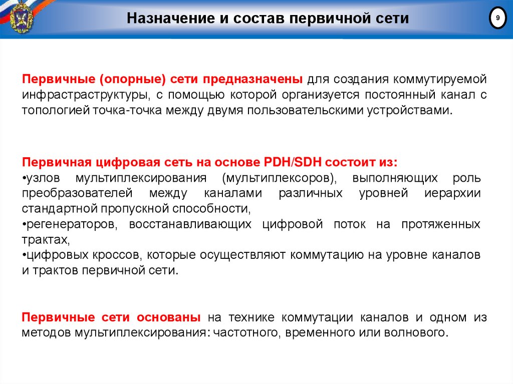 Назначение и состав первичной сетиПервичные (опорные) сети предназначены для создания коммутируемой