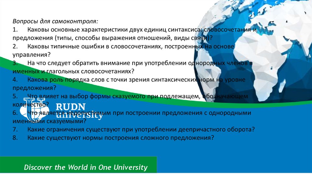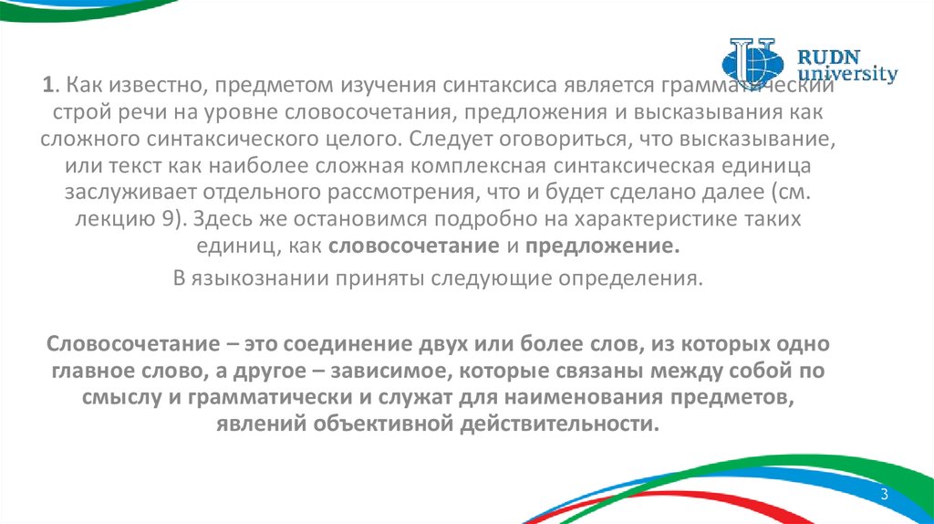 1. Как известно, предметом изучения синтаксиса является грамматическийстрой речи на уровне словосочетания, предложения и высказывания как