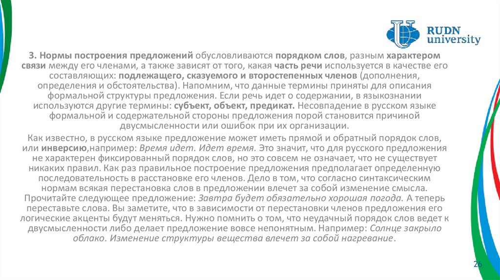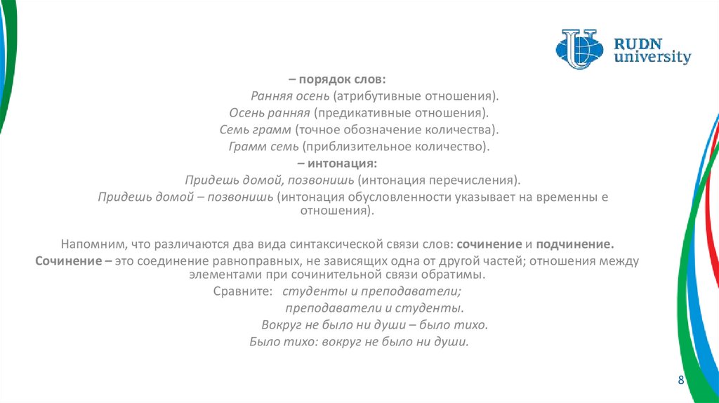 4. Какова роль порядка слов с точки зрения синтаксических норм на уровне