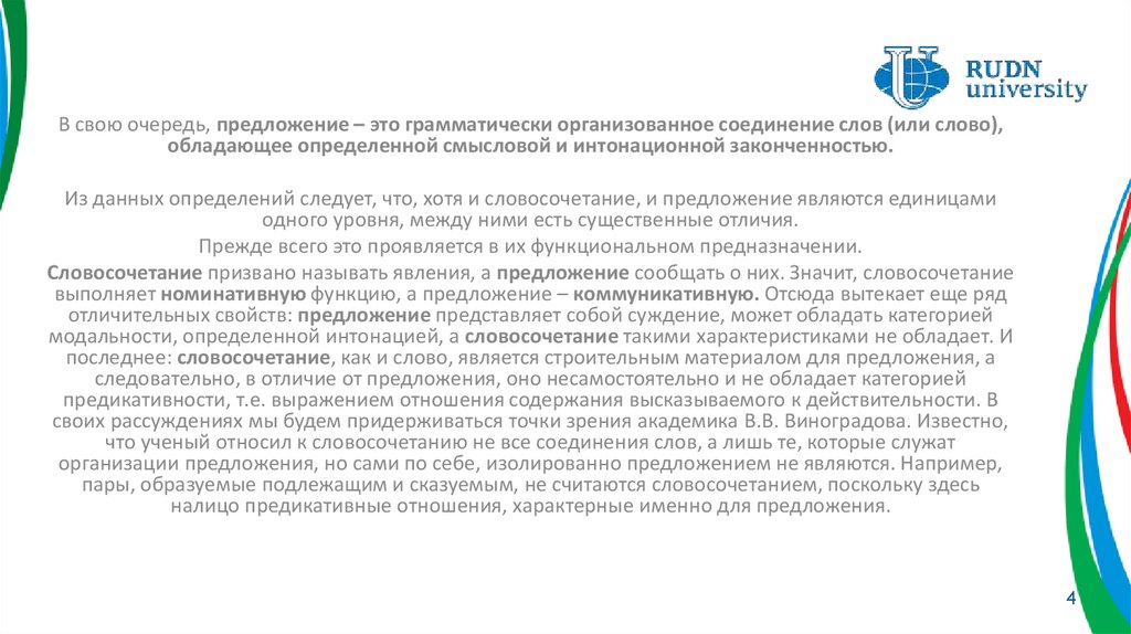 Из данных определений следует, что, хотя и словосочетание, и предложение являются единицами