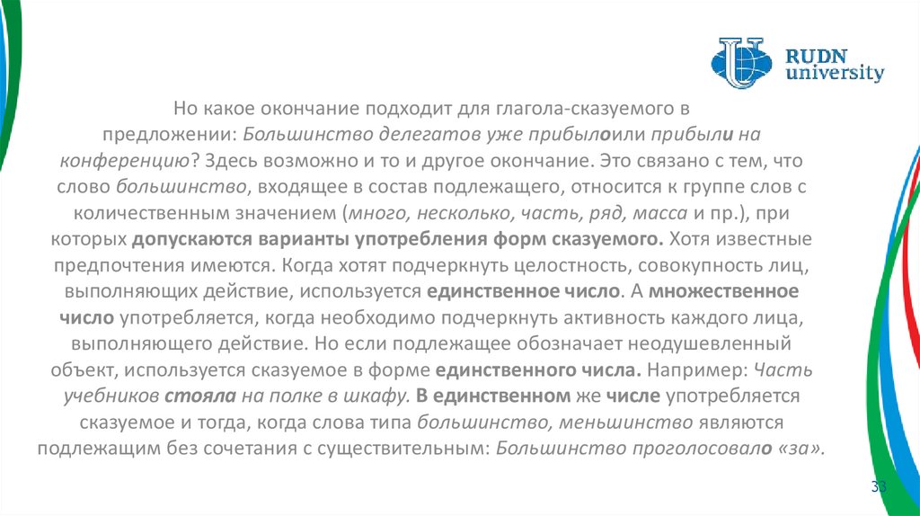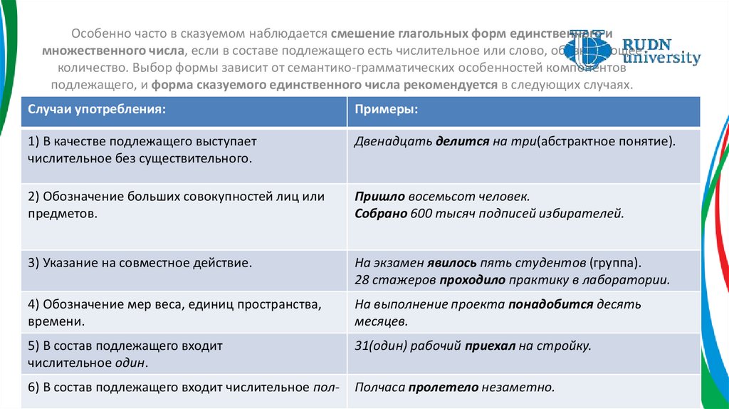 5. Что влияет на выбор формы сказуемого при подлежащем, обозначающем