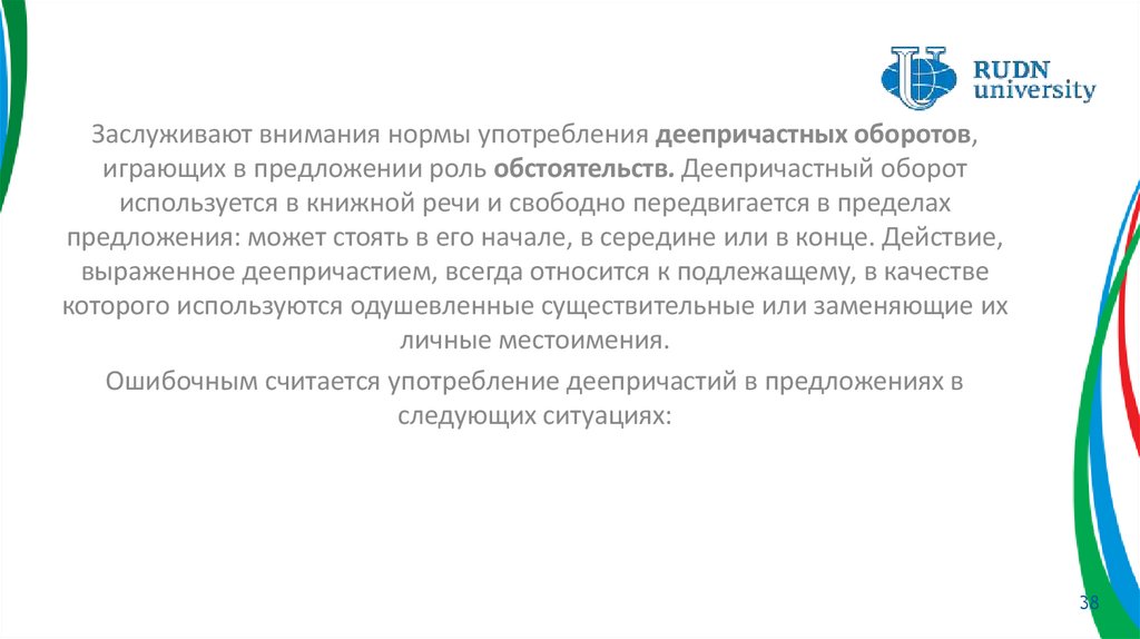 Заслуживают внимания нормы употребления деепричастных оборотов,играющих в предложении роль обстоятельств. Деепричастный оборот