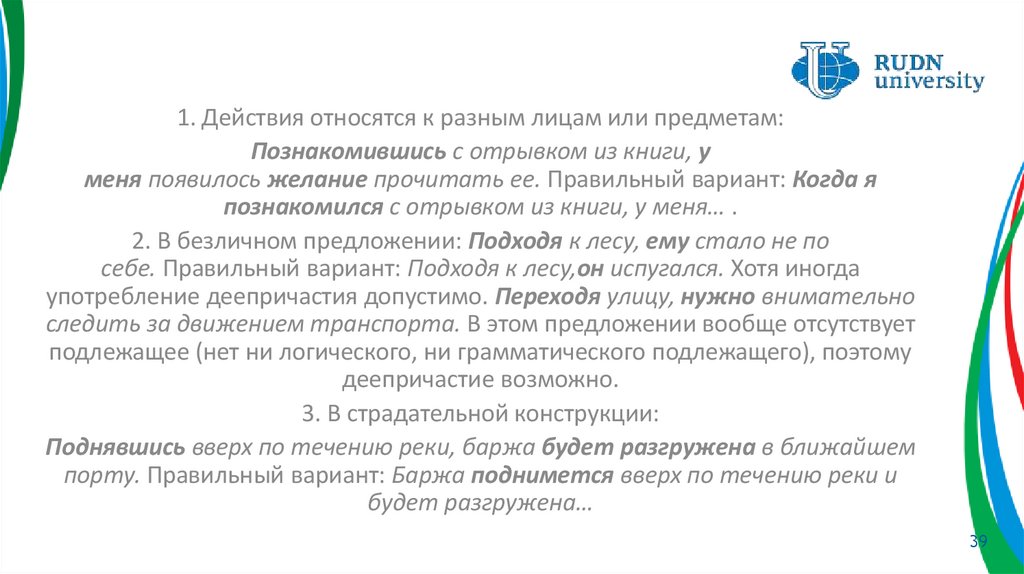 1. Действия относятся к разным лицам или предметам:Познакомившись с отрывком из книги, у