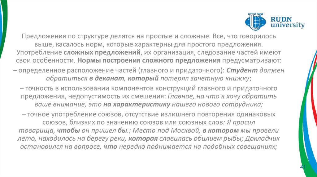 свои особенности. Нормы построения сложного предложения предусматривают: