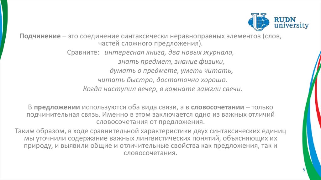 Вопросы для самоконтроля:1. Каковы основные характеристики двух единиц синтаксиса: словосочетания и