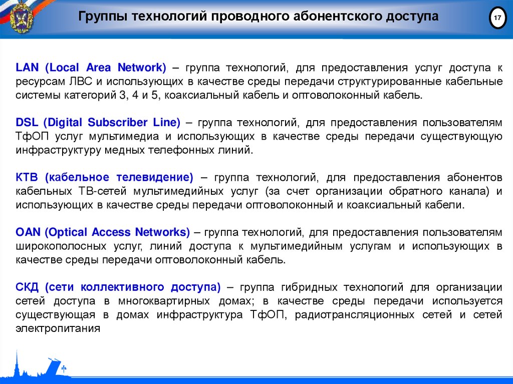 Сеть пользовательского (абонентского) доступа - совокупность линий, оконечных и