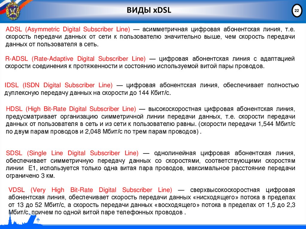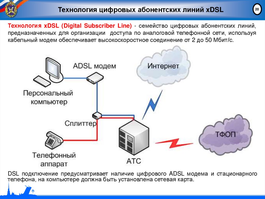 абонентская линия, обеспечивает скорость передачи данных «нисходящего» потока в пределах