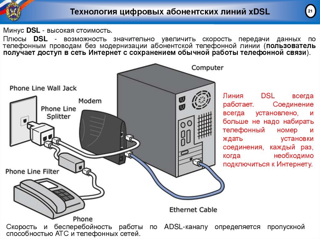 Скорость и бесперебойность работы по ADSL-каналу определяется пропускной