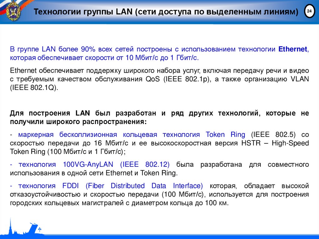 Технологии группы LAN (сети доступа по выделенным линиям)24