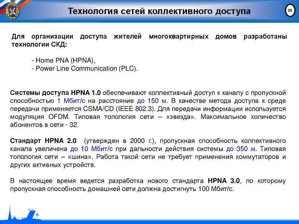 Системы доступа HPNA 1.0 обеспечивают коллективный доступ к каналу с пропускной