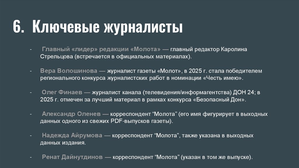 Надежда Айрумова — корреспондент “Молота”, также указана в выходных