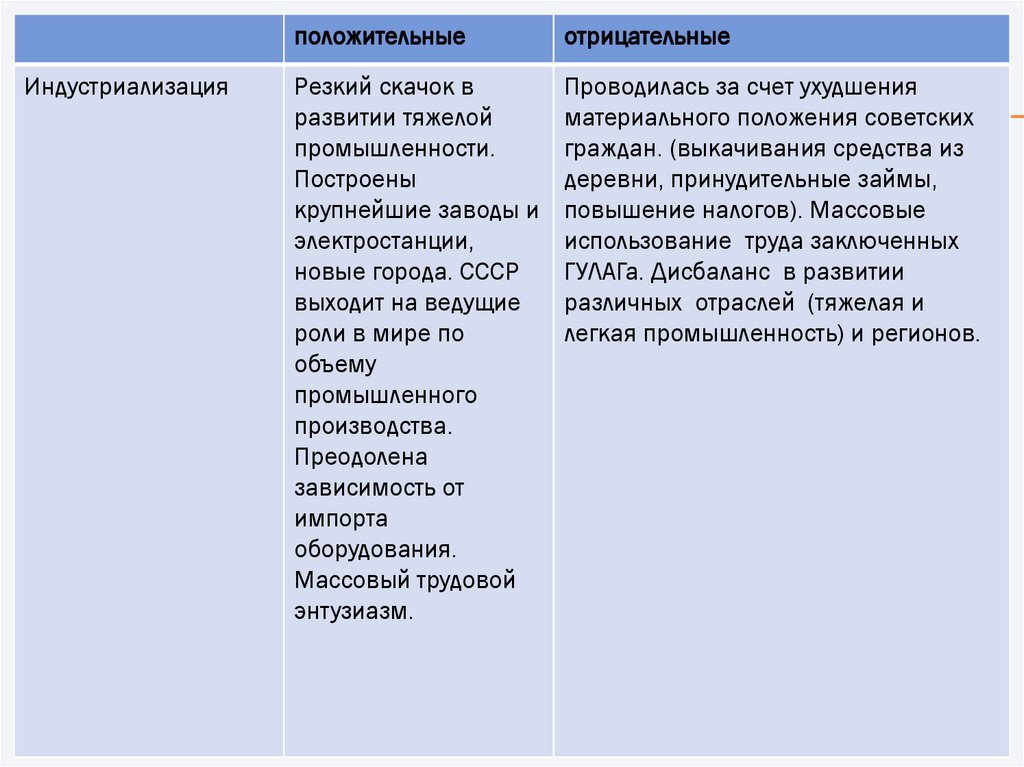 • Превращение СССР в индустриально развитую