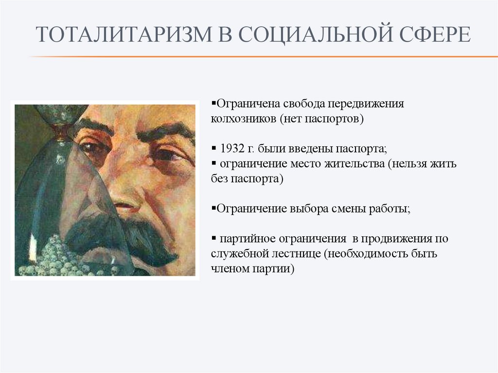 ТОТАЛИТАРИЗМ В СОЦИАЛЬНОЙ СФЕРЕОграничена свобода передвижения