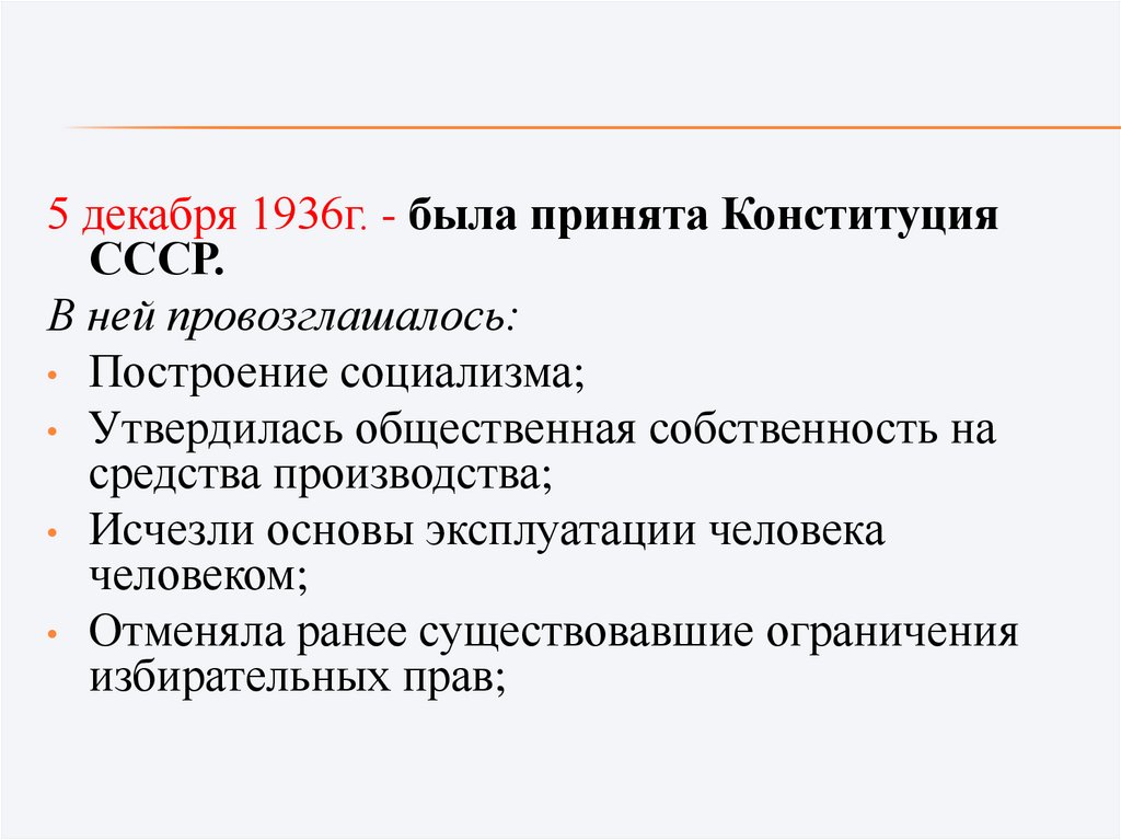 5 декабря 1936г. - была принята КонституцияСССР.