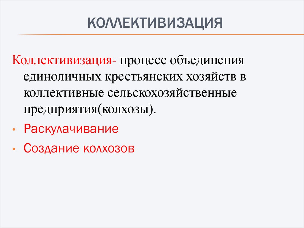 КОЛЛЕКТИВИЗАЦИЯКоллективизация- процесс объединения